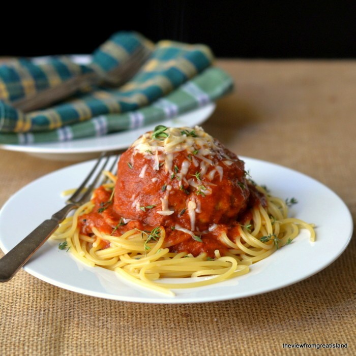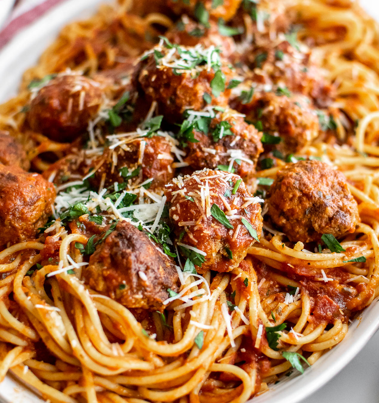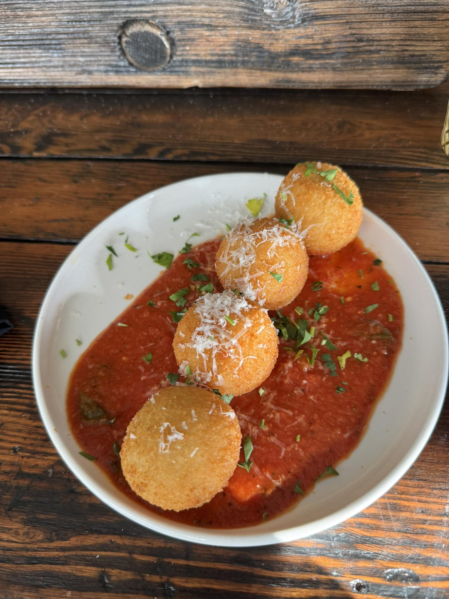 groundbeef, garlic, basil & parsley cooked & based in marinara, topped in pecorino romano