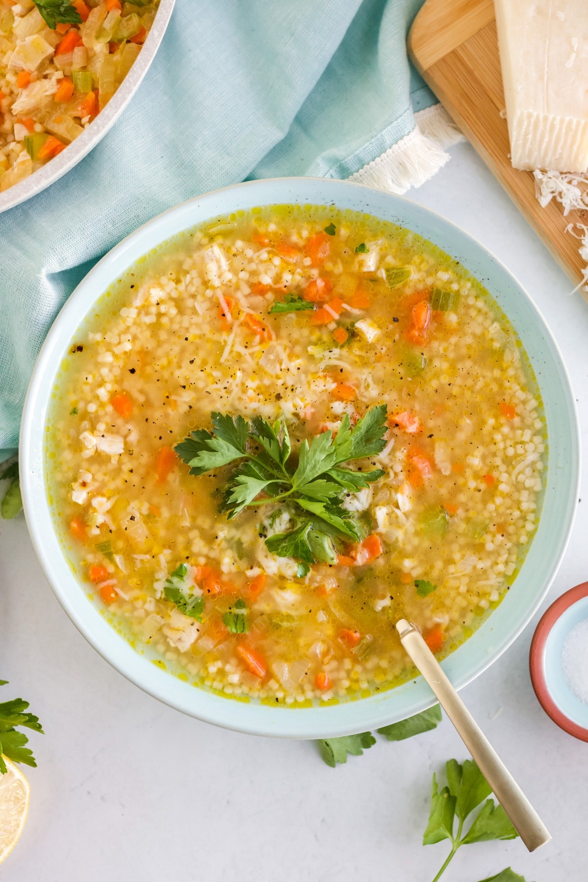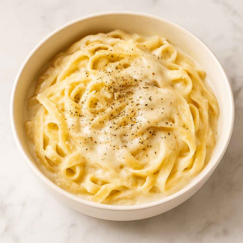 homemade fettuccine, asiago, parmesan, topped with pecorino romano