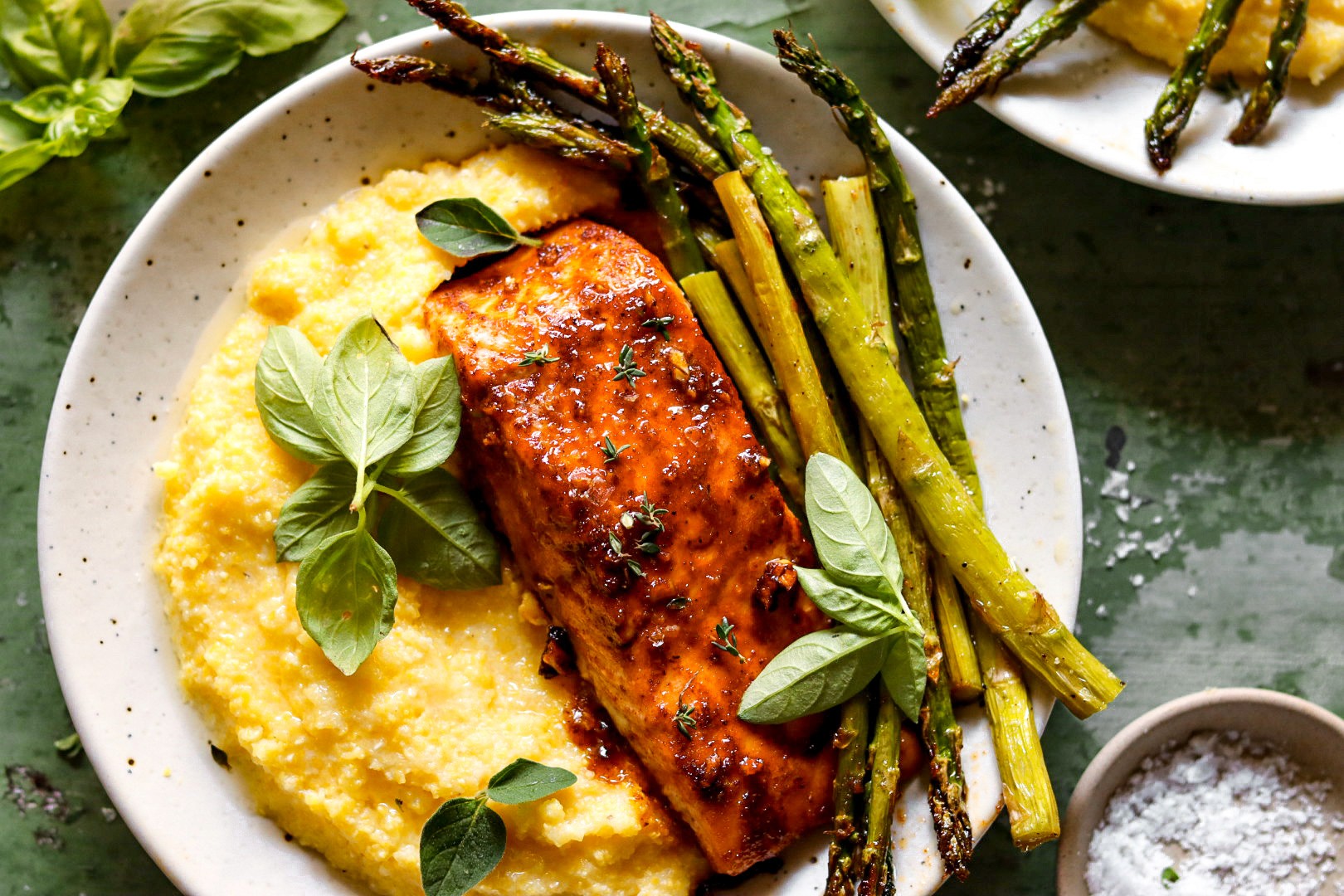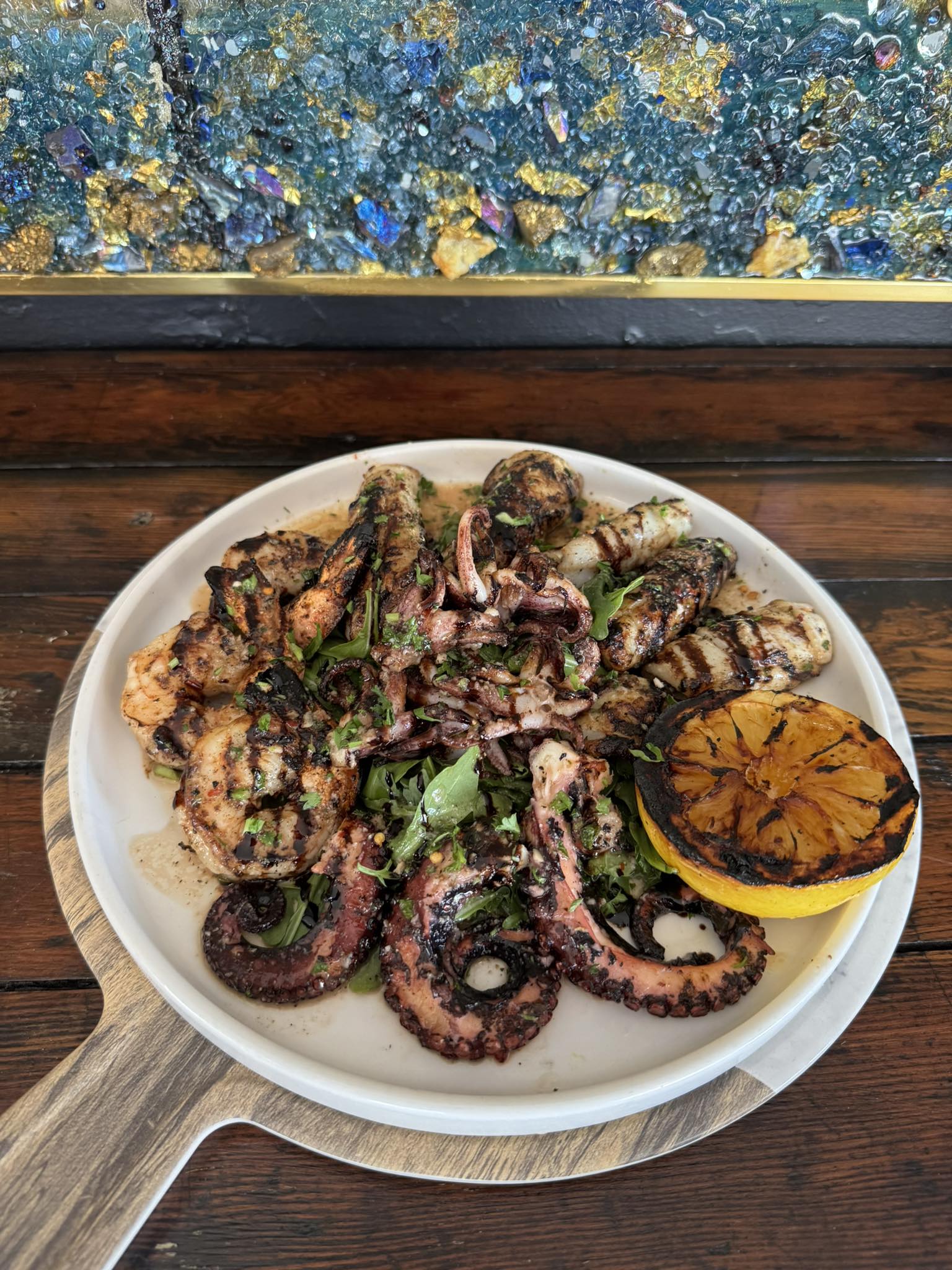 pan-seared salmon, red wine vinaigrette, Italian herbs, grilled lemon